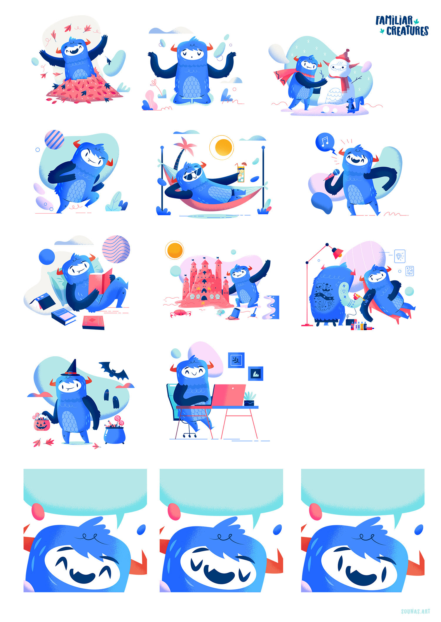 A set of monster graphics I made for Familiar Creatures agency.